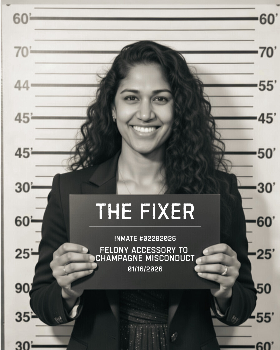 Suspected ringleader of a cross-state alliance involving florists, bakers, and a shady RSVP ring. Known aliases include “The Bride.”