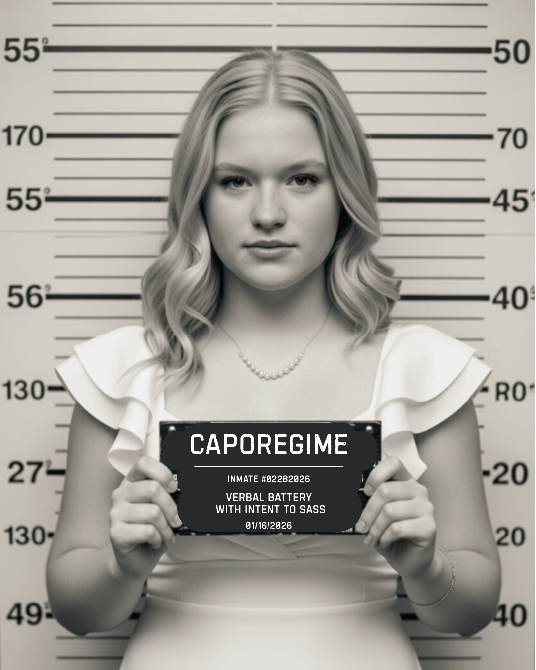Subject refuses legal representation, claiming “I’ll talk if I damn well feel like it.” Immunity not advised; the sequins are a repeat fabulous offense. Notorious for family text chains and advice with suspicious accuracy. Considered armed and fabulous.