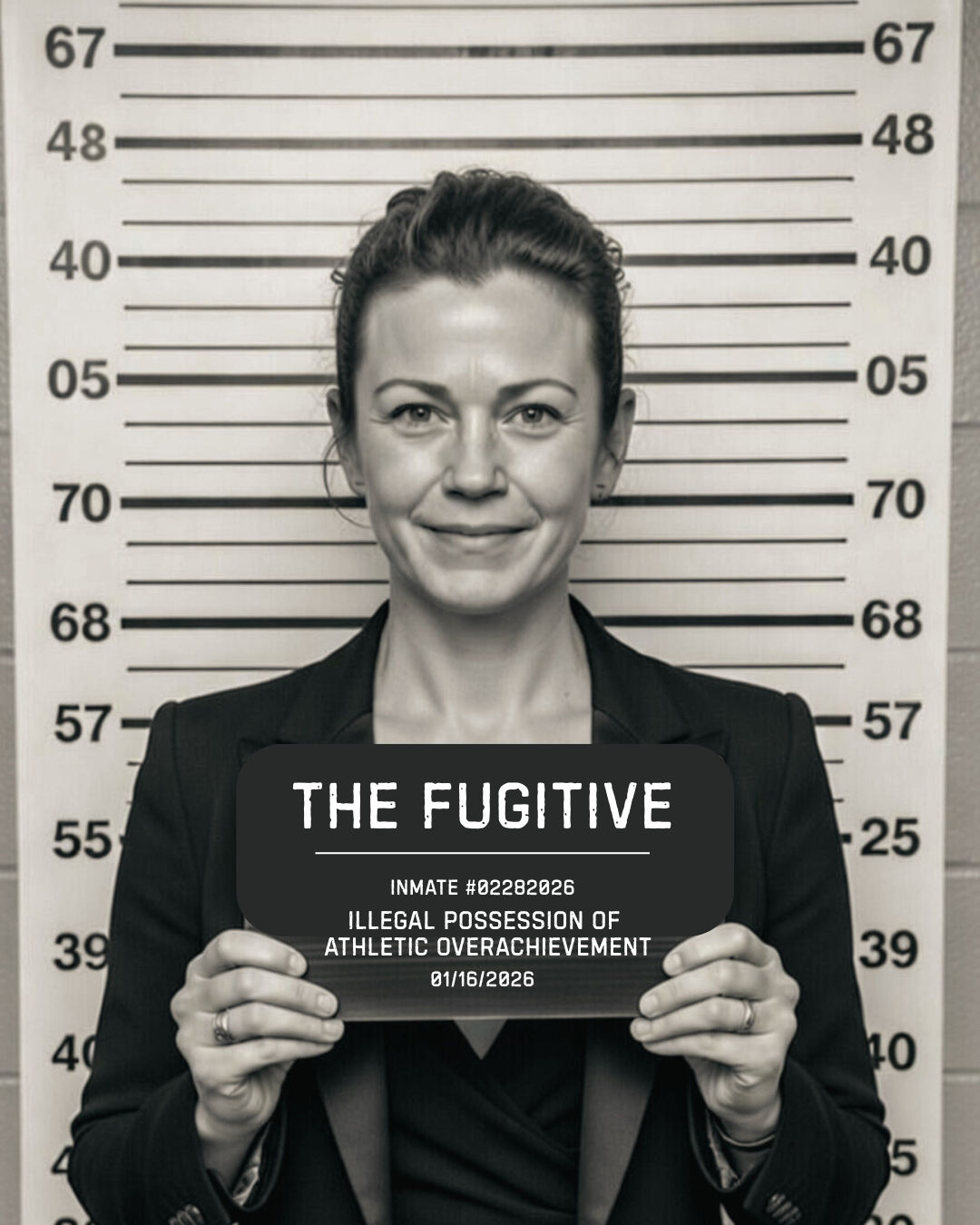 Found in possession of multiple medals, protein shakes, and spreadsheets labeled “PB goals.” Last seen running from the cops.